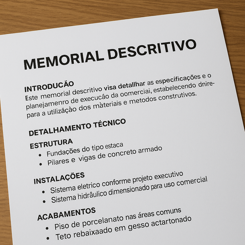 Na prática, muitos problemas em obras comerciais nascem da falta de clareza. Um memorial descritivo completo impede que dúvidas ou interpretações diferentes comprometam o resultado.
